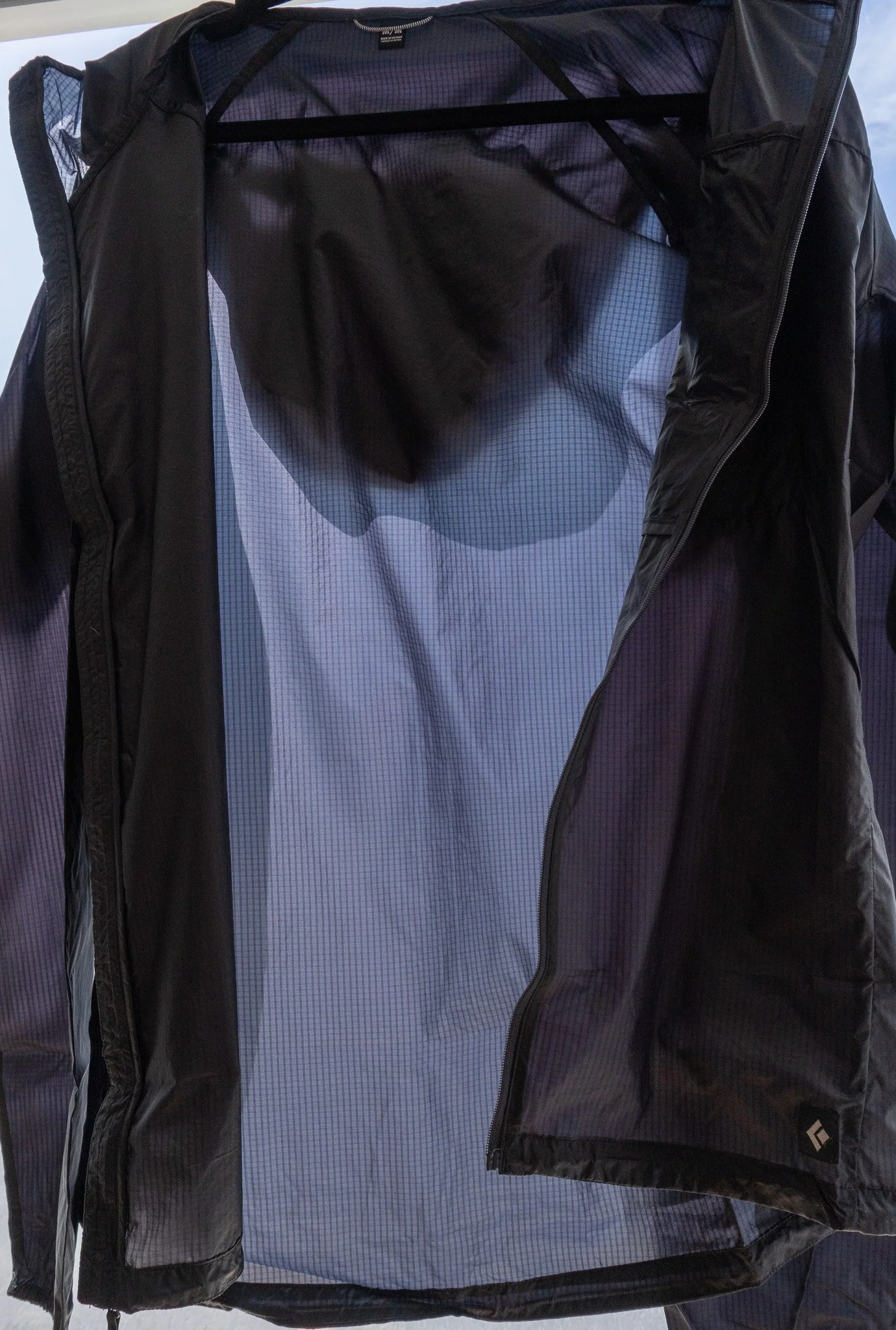 The chest pocket that doubles as the stuff pocket makes a lot of sense on a shell like this. It keeps the jacket easy to stash in a running vest, pack, or climbing setup without needing to think much about it. The clip loop is also a genuinely useful detail for climbers who want to hang it off a harness or bag. Black Diamond clearly built this with fast-and-light mountain use in mind, and that comes through in the details.